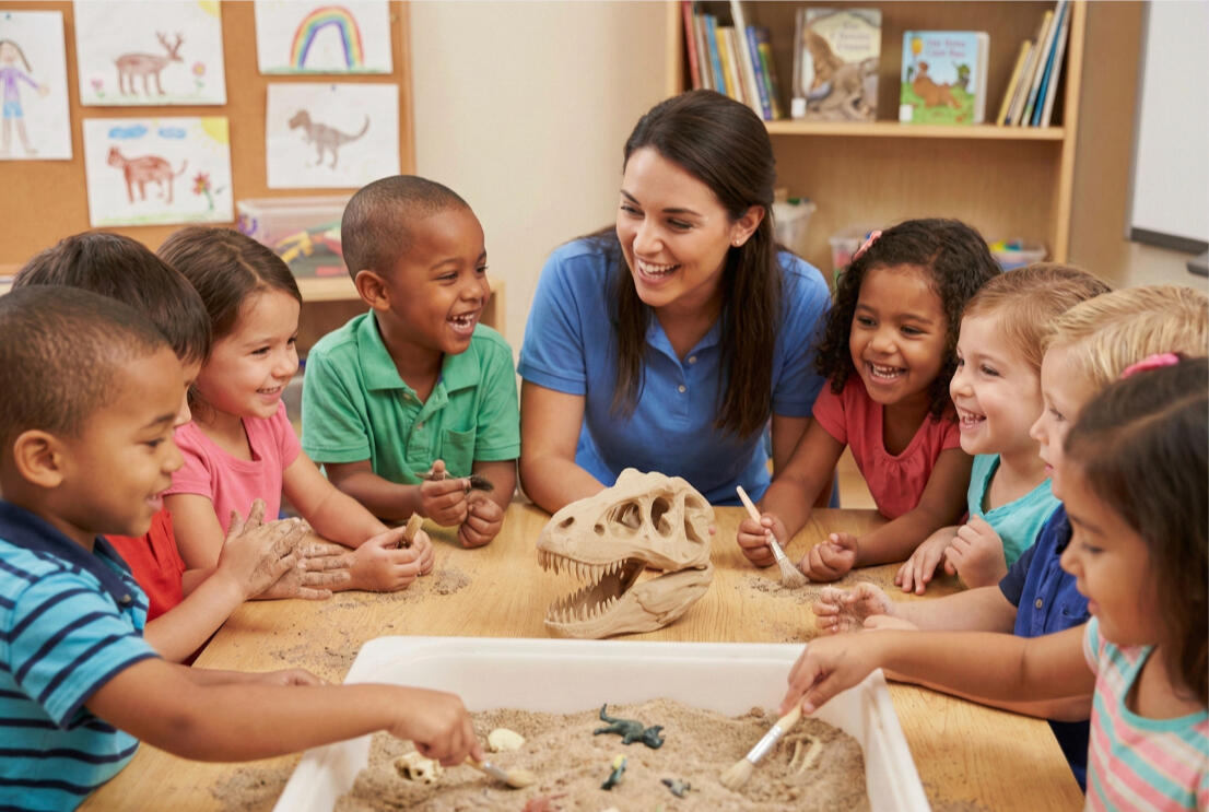 Brushes, tools, hidden fossils — kids excavate like real paleontologists.